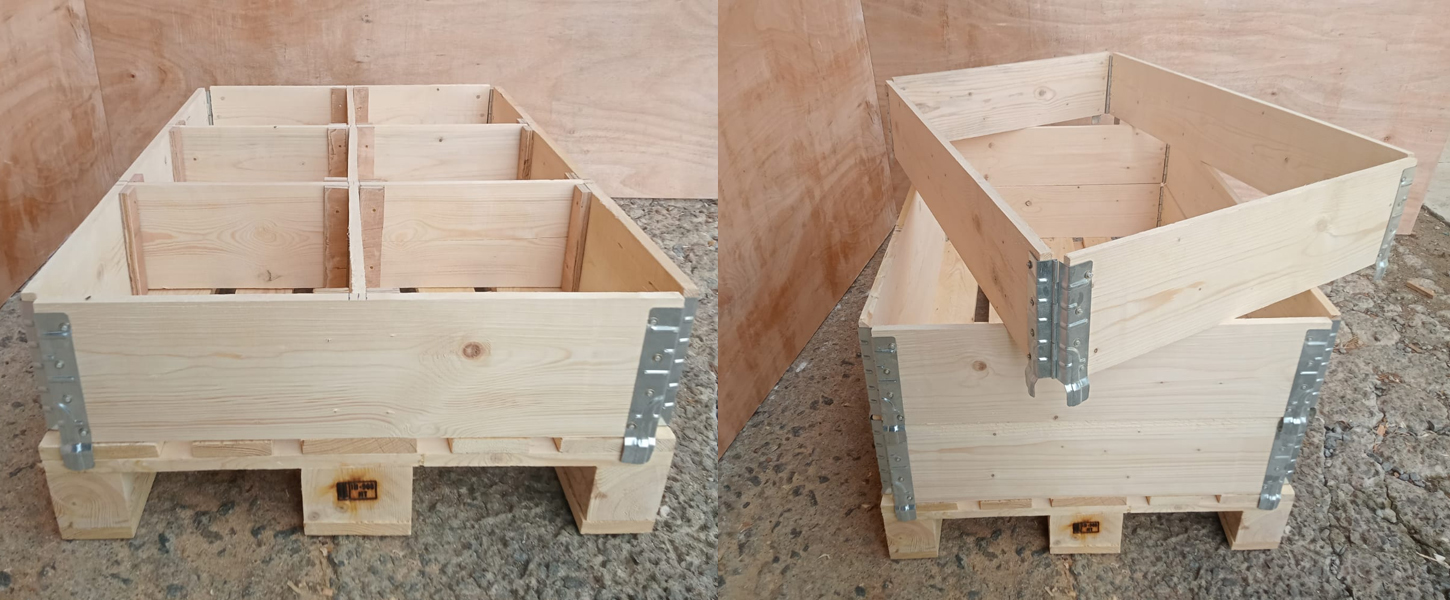 We specialize in manufacturing wooden pallet collars, allowing you to transform your pallet into a safe and secure storage box that is quickly assembled, foldable, and space-efficient. This is the ideal solution for warehousing, transportation, and export, offering flexibility in both height and handling.